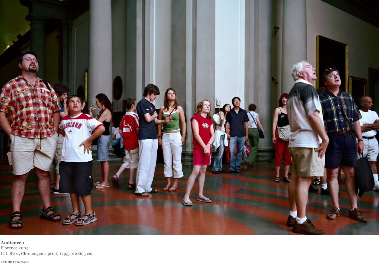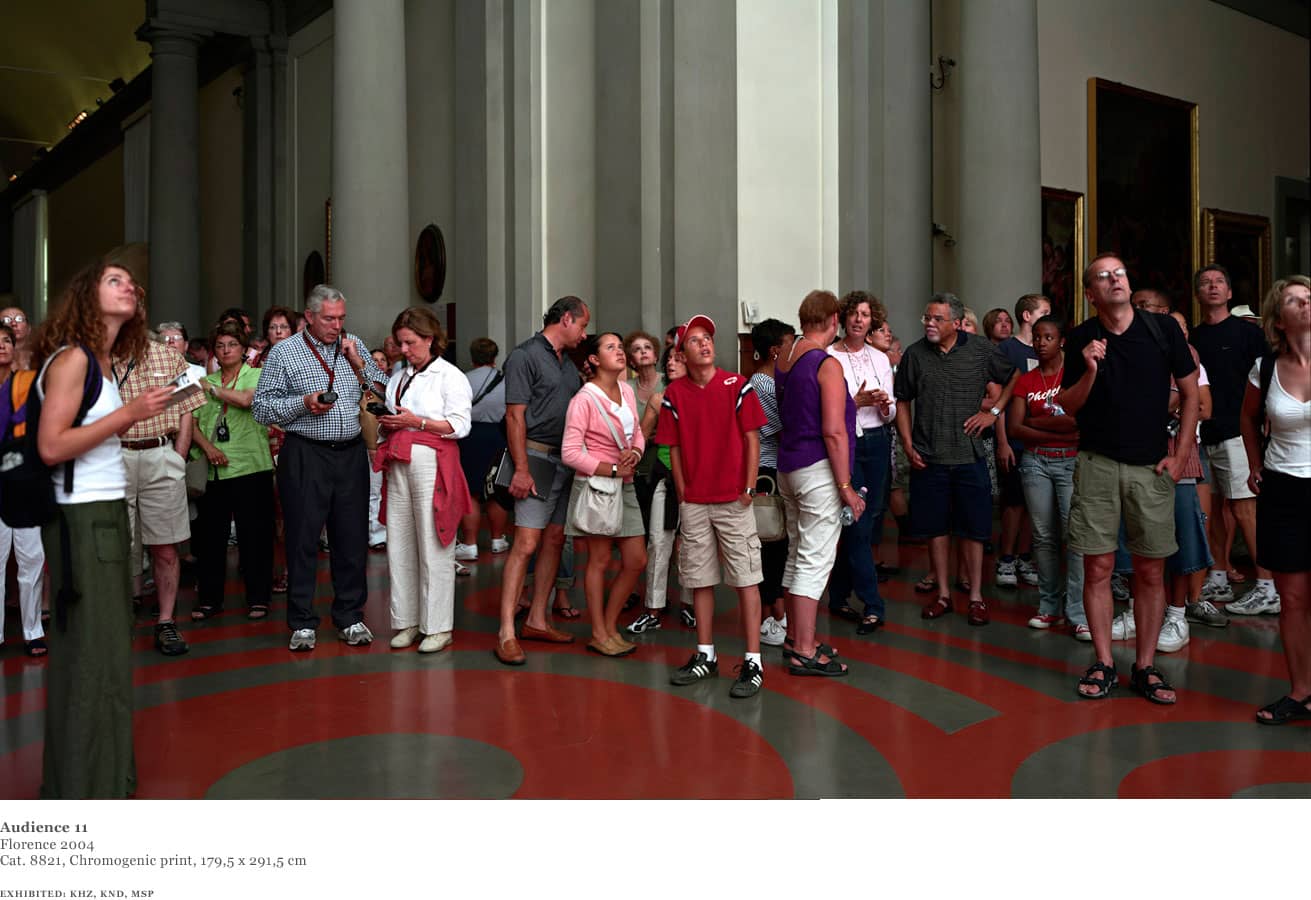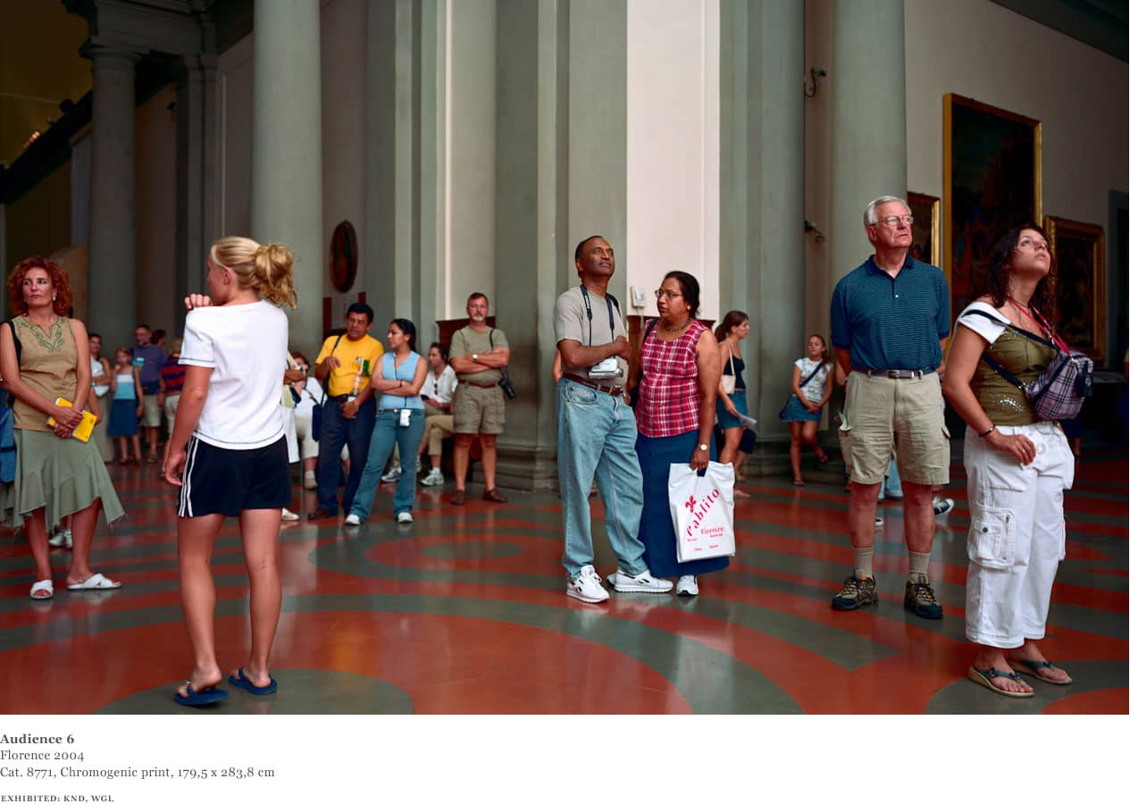 Over the course of one week in 2004, Struth worked in the David room at the Accademia. Using an 8 x 10 format and for the first time a system of artificial flash light, Struth was able to shorten the exposure and illuminate the audience from a position adjacent to the sculpture whilst diminishing the presence of the paintings behind the viewers.
