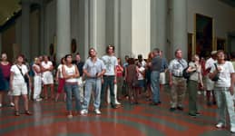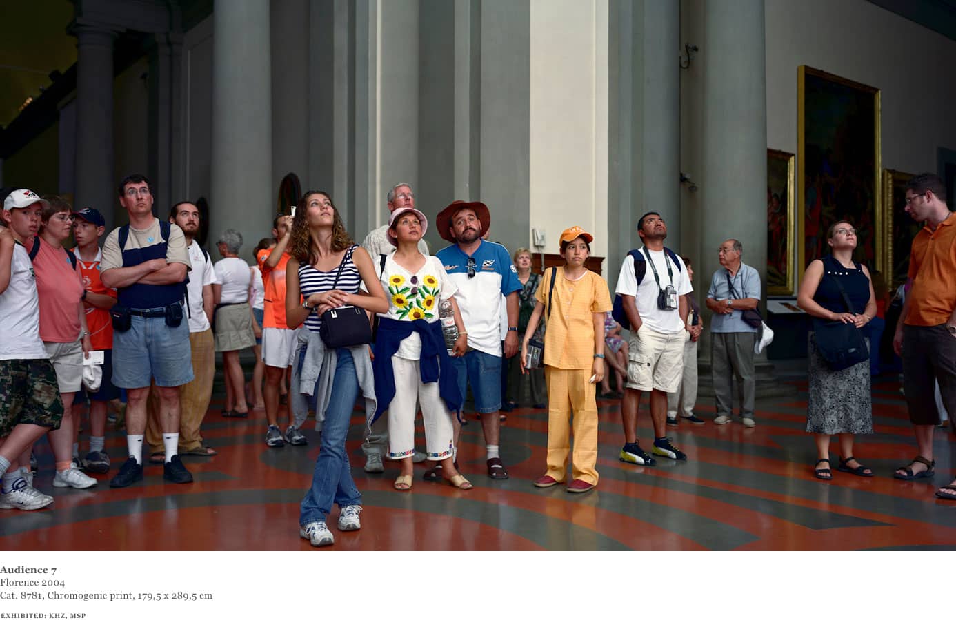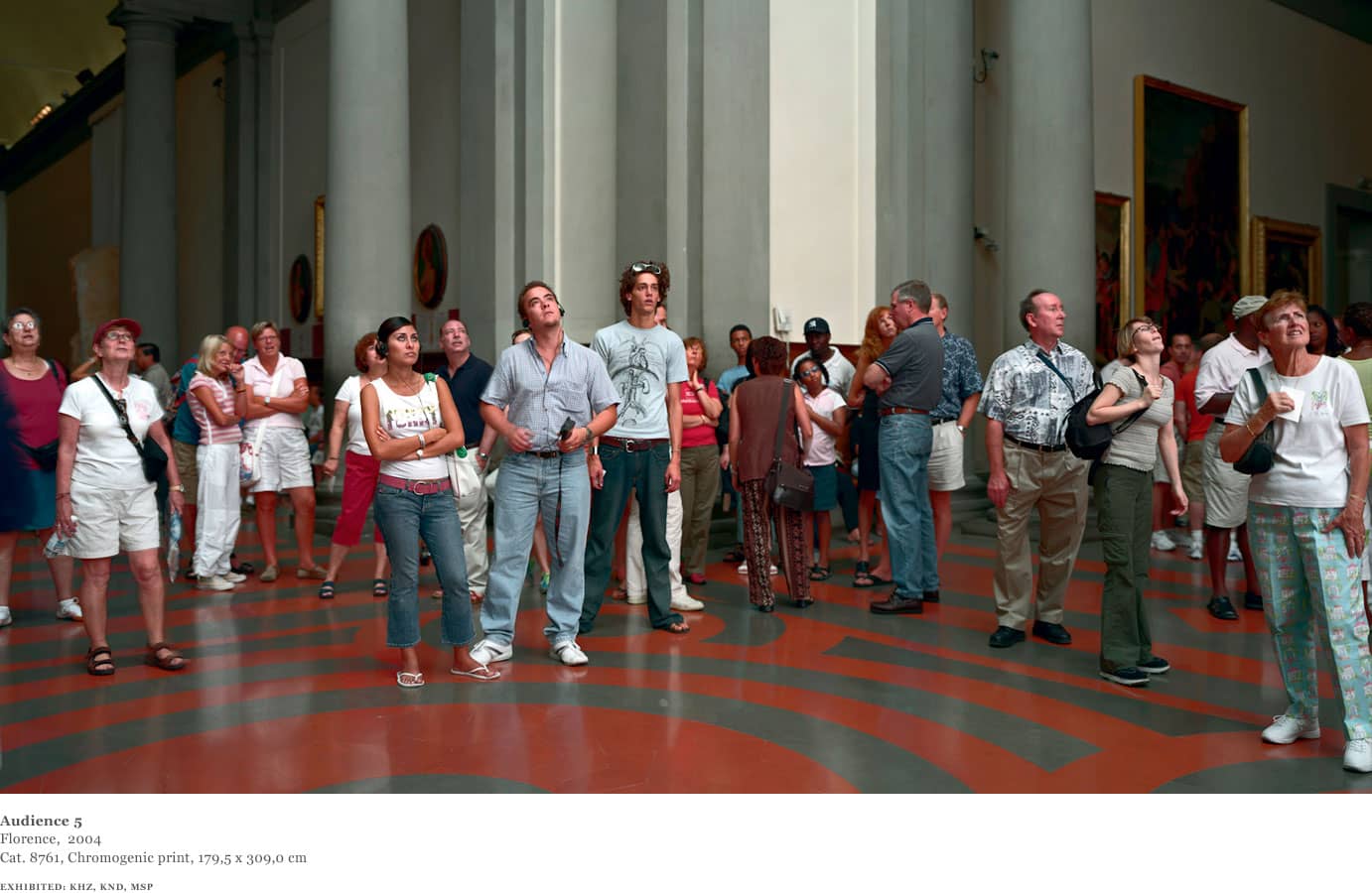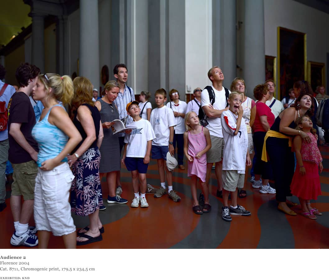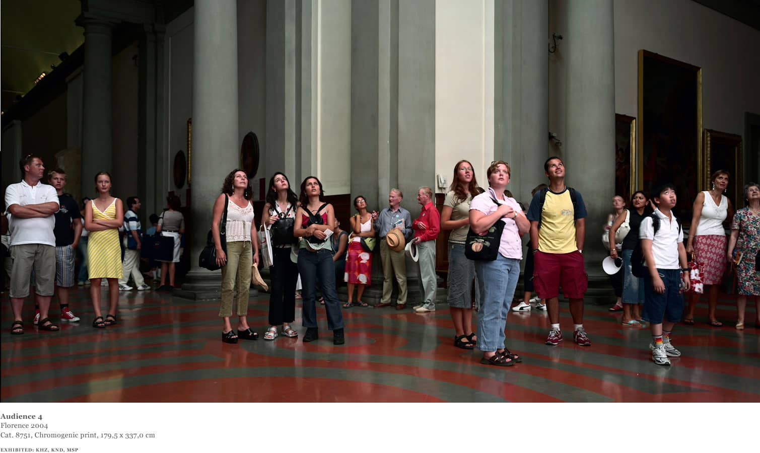 Over the course of one week in 2004, Struth worked in the David room at the Accademia. Using an 8 x 10 format and for the first time a system of artificial flash light, Struth was able to shorten the exposure and illuminate the audience from a position adjacent to the sculpture whilst diminishing the presence of the paintings behind the viewers.