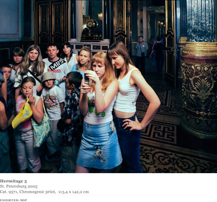 Struth continued this project with a second series of works, based on close-ups of people looking at a single work, Leonardo da Vinci’s Madonna with a Flower (Benois Madonna) in the State Hermitage Museum in St. Petersburg in 2005. The viewers themselves again become the focus, whilst the object of their attention, the da Vinci painting, is not visible.