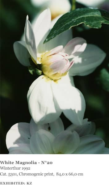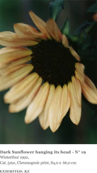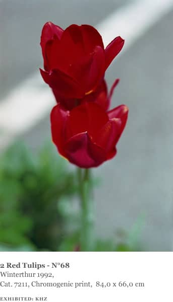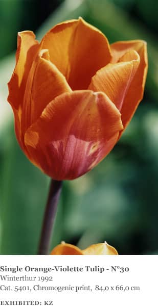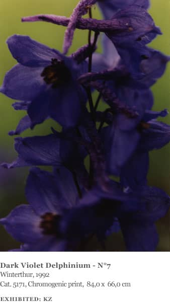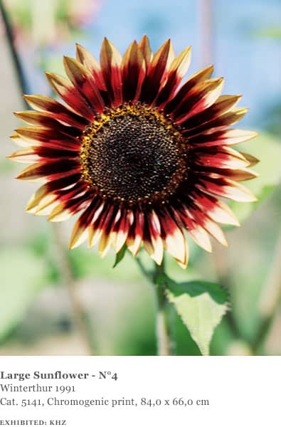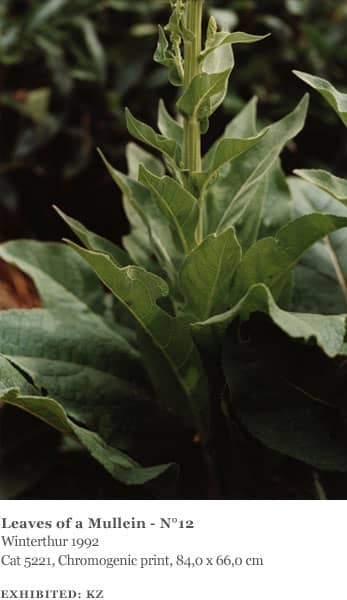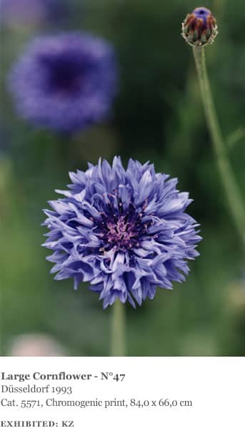The landscapes Struth photographed were all made in the area around Winterthur, including views of the Thur Valley, nearby vineyards and farmland as well as the hospital gardens. Many of the plants and flowers he photographed were also found in the immediate vicinity of the hospital and in a garden on the grounds of the Oskar Reinhart collection in Winterthur. He also made several ‘flower portraits’ in the garden of his friends Ingo Hartmann and Hannah Erdrich-Hartmann in Düsseldorf, including clematis, tulips, roses, cherry blossom and dandelions. They represent a familiar and ‘domesticated’ view of nature.