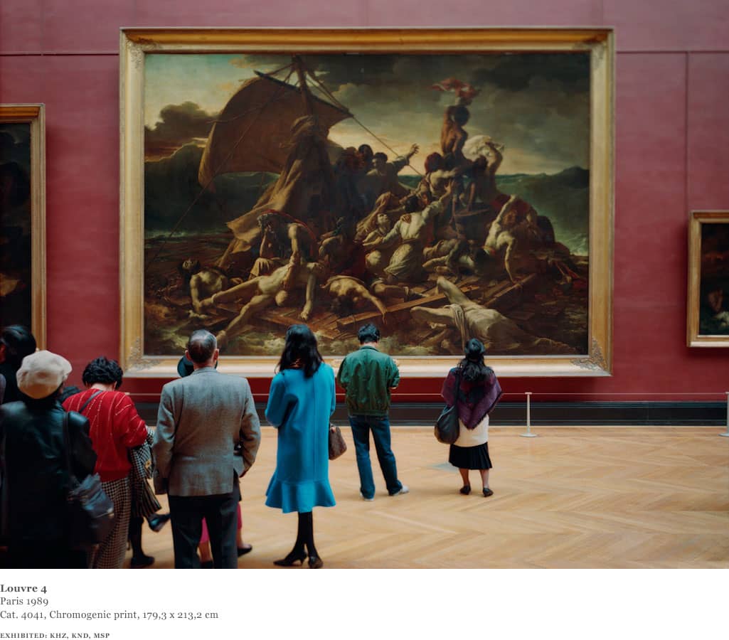He began to work at the Louvre and the Musée d’Orsay in Paris in June 1989. The choices of rooms and subjects were initially quite spontaneous, partly to do with an interest in the motifs or with the configurations of figures in the paintings: David’s Coronation of Napoleon with a school group in the foreground; Delacroix’s The Death of Sardanapalus; a crowd waiting to look at the Mona Lisa; and a work combining the existential drama of Géricault’s The Raft of the Medusa with the presence of a group of Japanese viewers. “The idea behind the museum photographs was to retrieve masterpieces from the fate of fame, to recover them from their status as iconic paintings, to remind us that these were works which were created in a contemporary moment, by artists who had everyday lives. They can be admired but revering the artist and their work can also be an impediment. In essence, I wanted to bring together the time of the picture and the time of the viewer.”