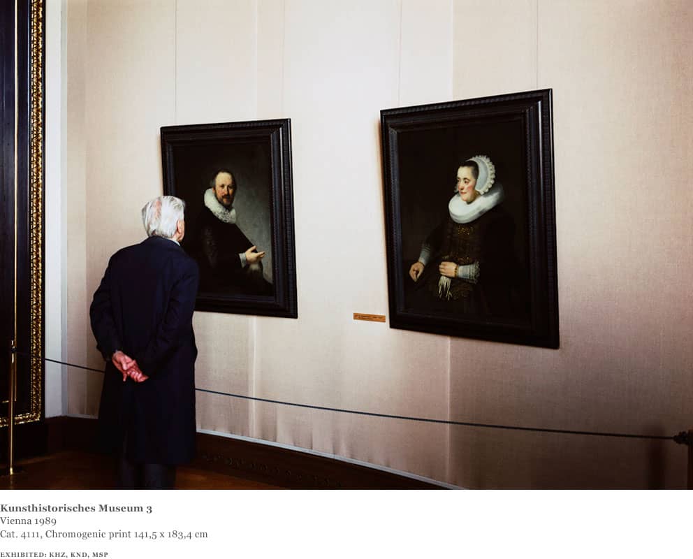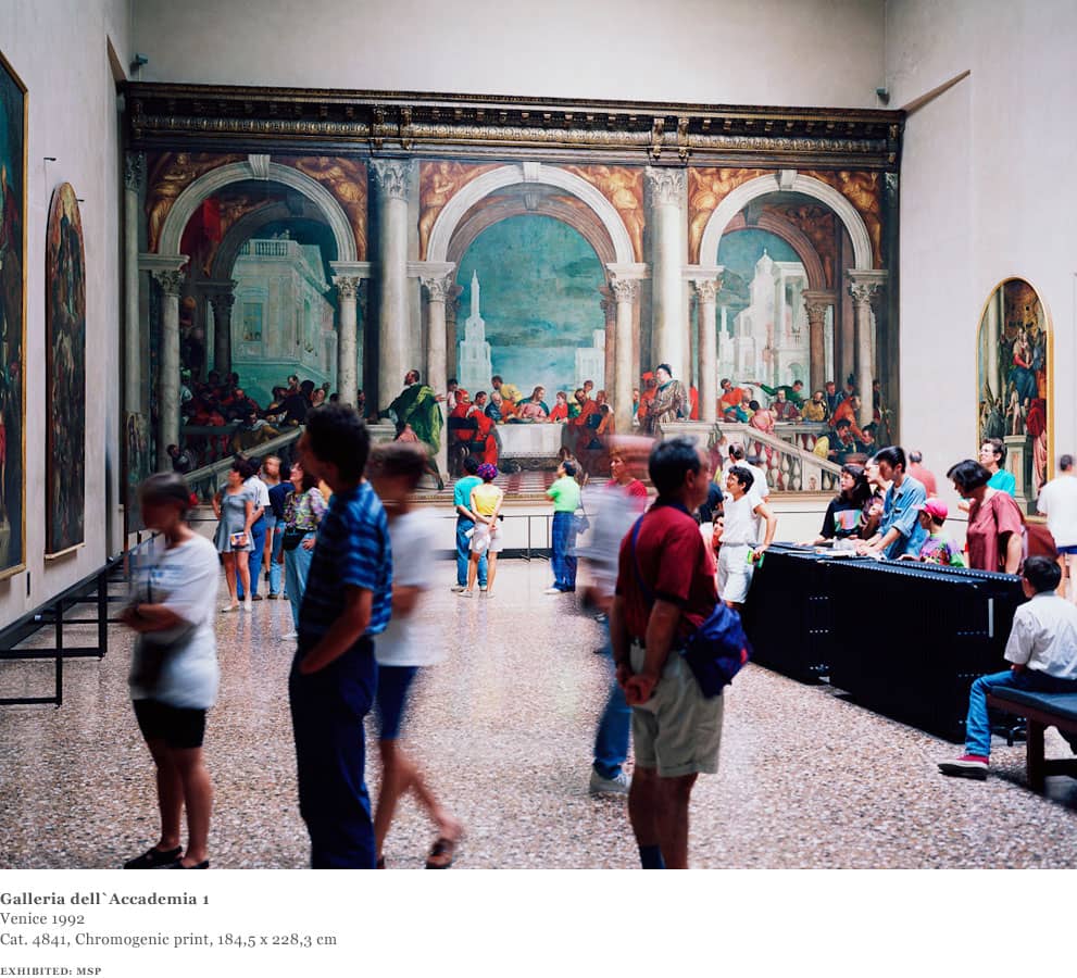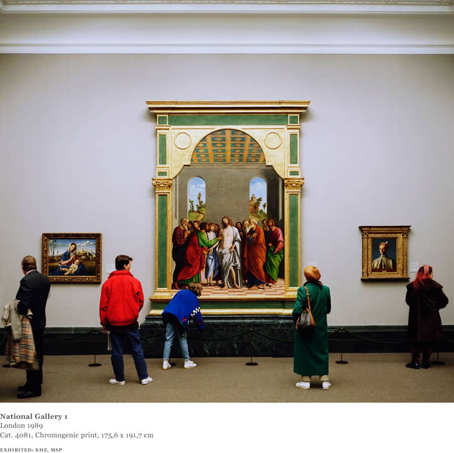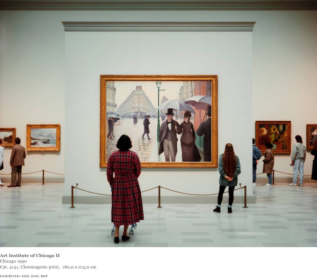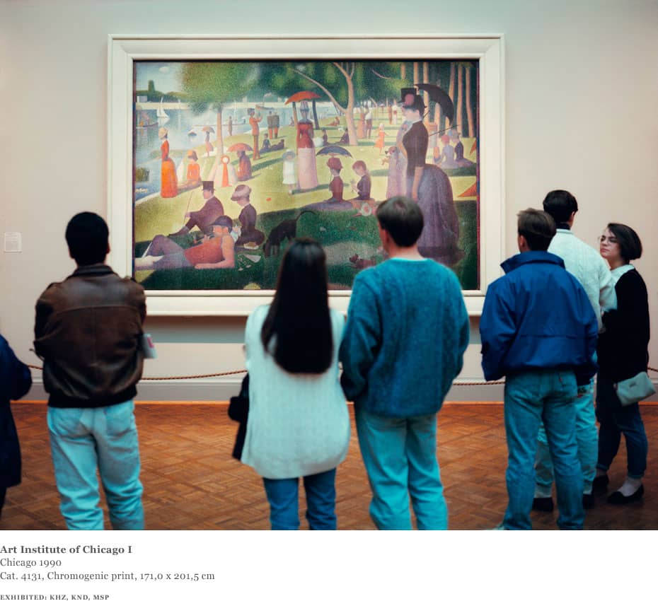 The series grew with further pictures made at the National Gallery in London, the Rijskmuseum in Amsterdam, the Kunsthistorisches Museum in Vienna and the Art Institute of Chicago. Struth was initially uncertain as to how to present this new body of work. He considered making large posters of them as some kind of site-specific installation in the subway in Paris. Eventually he decided on a different kind of ‘campaign’— a sequence of exhibitions in one year at five different galleries, starting in 1990: Galerie Max Hetzler in Cologne, Marian Goodman Gallery in New York, Galerie Paul Andriesse in Amsterdam, Galerie Meert-Rihoux in Brussels and Galerie Giovanna Minnelli in Paris. A selection of Museum Photographs was also included in the 1990 Aperto at the Venice Biennale.
