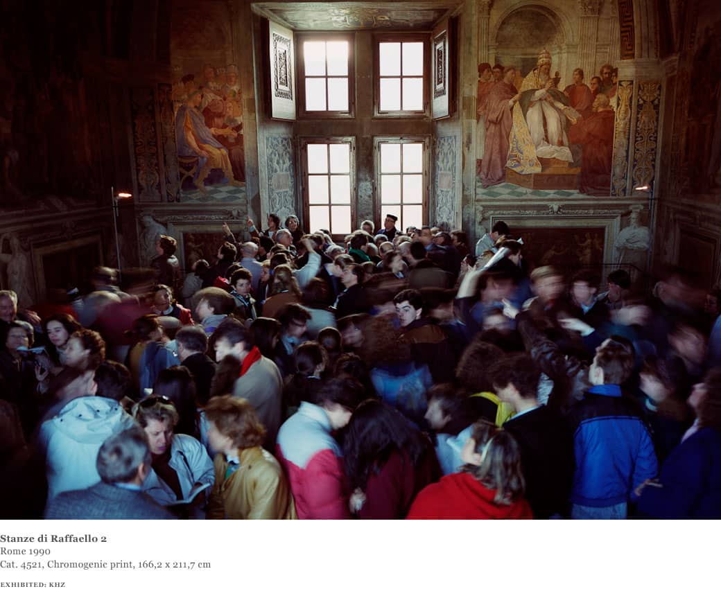During the same visit to Rome, he also made two photographs in the Stanze di Raffaello in the Musei Vaticani. One, with a frenzied crowd of visitors, prefigures subsequent series of works made in the Hermitage Museum in St. Petersburg and the Museo del Prado in Madrid.