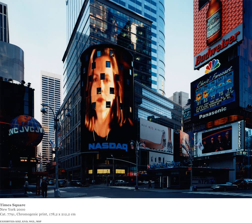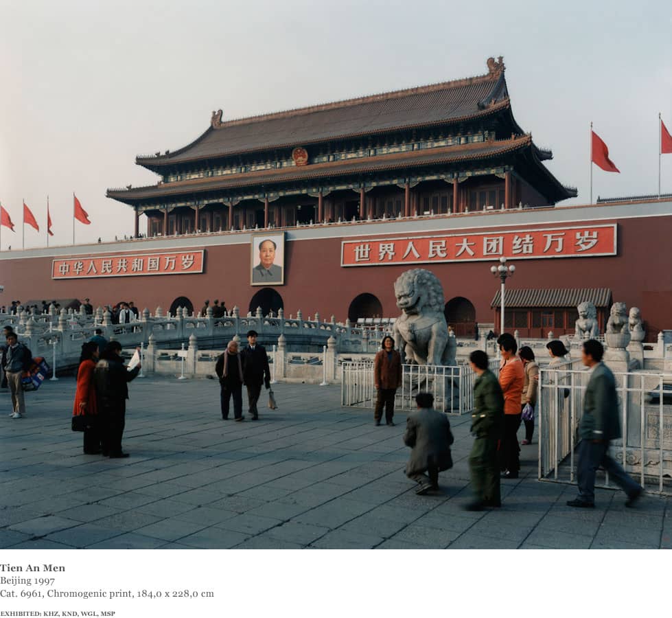 Struth broadened his enquiry into the relationship between image and ideology in a number of works made in sites of powerful secular significance. These include Tien An Men, Beijing (1997) with the famous portrait of Chairman Mao at its centre and Times Square, New York (2000) dominated by the huge image of an anonymous woman on an advertising screen.