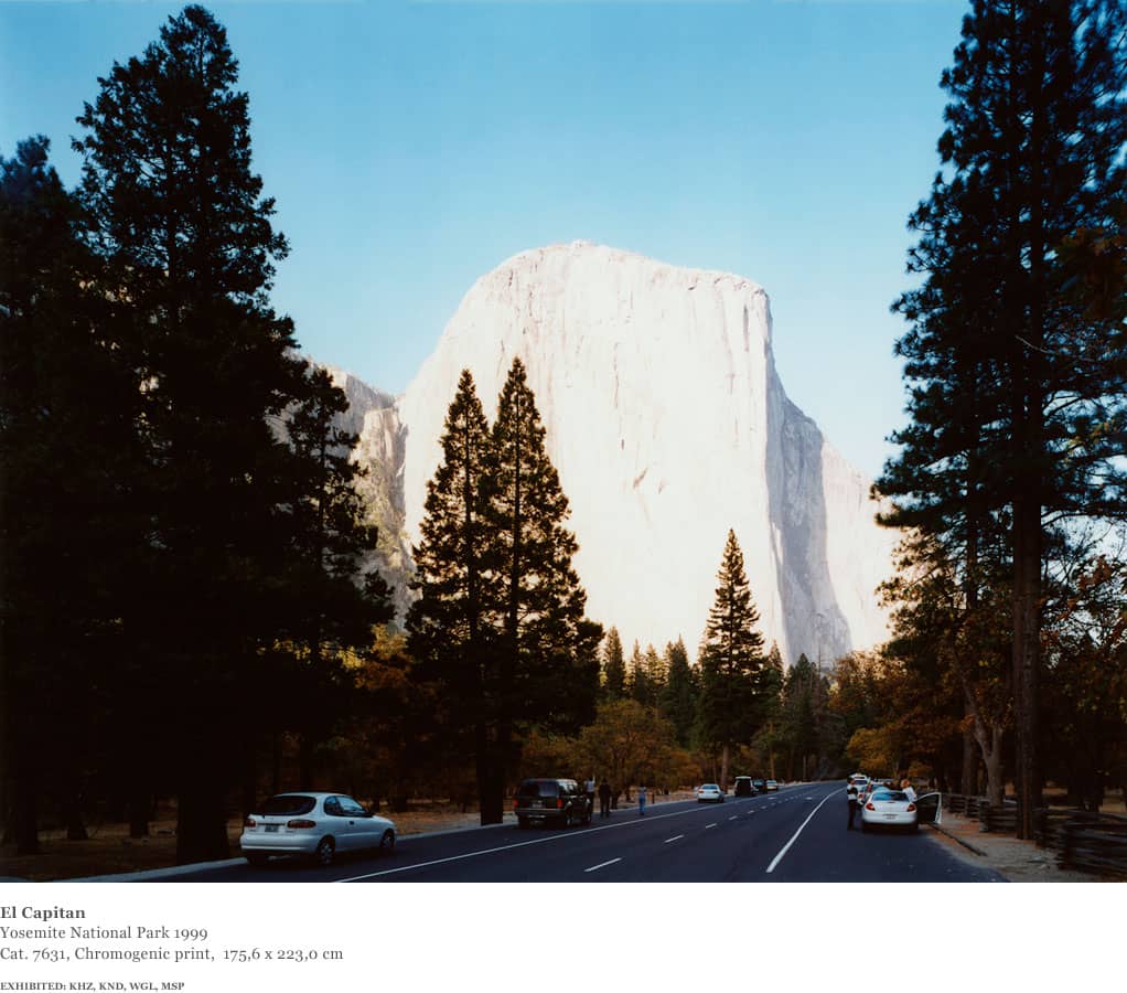 On a road trip through Nevada and California in 1999, Struth decided to visit the famous granite rock formation El Capitan in the Yosemite National Park, familiar to him through the work of 19th-century photographers such as Carleton Watkins and Eadweard Muybridge. Struth photographed the drive-by tourists who have stopped to experience and photograph this symbolic national monument, an iconic form with an ideological charge of a different kind.