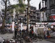 The frenetic experience of the urban environment in China stimulated a significant change in Struth’s approach to taking pictures of city streets. Many of the street photographs made in Beijing, Shanghai and Wuhan include crowds of people, cars and bicycles in addition to the dense urban environment. While working on the Museum Photographs, Struth had developed his observational skills so that he could read the movements of people within the viewfinder and wait until the configuration of people in the picture seemed right. He applied a similar technique in response to the challenge of the busy urban environments in China.