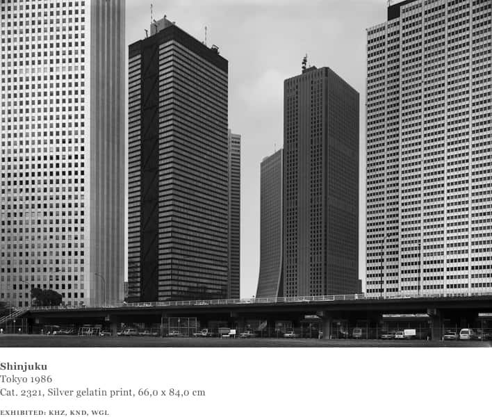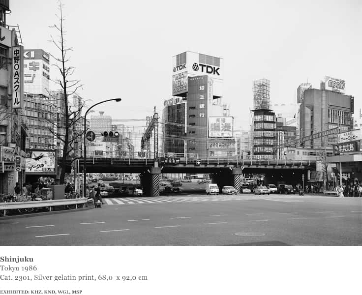 Struth spent three weeks in Yamaguchi, where the exhibition at the Shimada Gallery took place, then one week in Kyoto and one week in Tokyo. Japan offered an opportunity for Struth to extend further his project to photograph urban structures and space. He made a first group of work in Japan that he considered to be of interest, in the district of Shinjuku in Tokyo in 1986, picking up on some of the pictorial devices he had used in New York and in Europe. At the same time, he recognised that working in Japan necessitated a further loosening of a systematic approach to picture making.