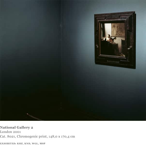 One final Museum Photograph also offers a contemplative presentation of a single painting, Vermeer’s Woman with a Lute, which was on temporary exhibition at the National Gallery in London. For the first and only time, Struth focuses solely on the painting and the empty space around it, rather than including any viewers within the frame of the picture.