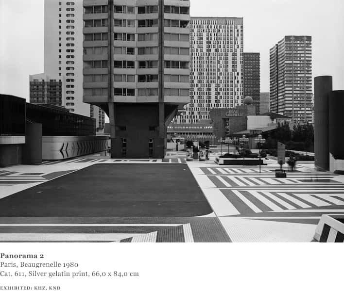 In 1980 Rüdiger Schöttle invited Struth to make an exhibition of the Beaugrenelle photographs at his gallery in Munich. The exhibition consisted of thirty-seven photographs, presented together with the architectural plan of the complex as well as the advertising brochures published by the developer. Struth recalls the exhibition as “quite a laconic presentation, perhaps a bit didactic but nonetheless not well understood.”