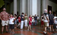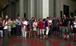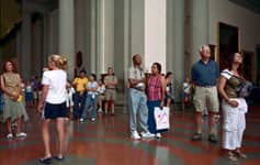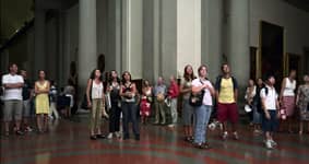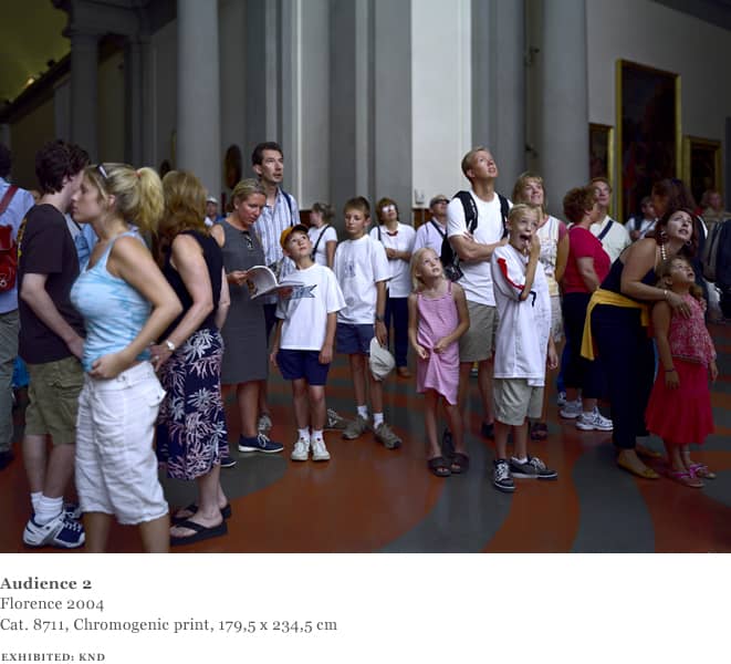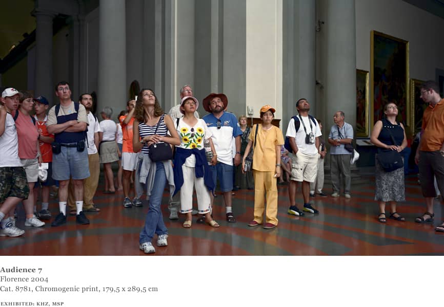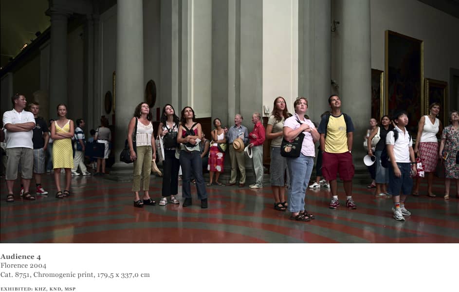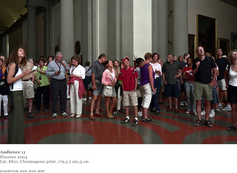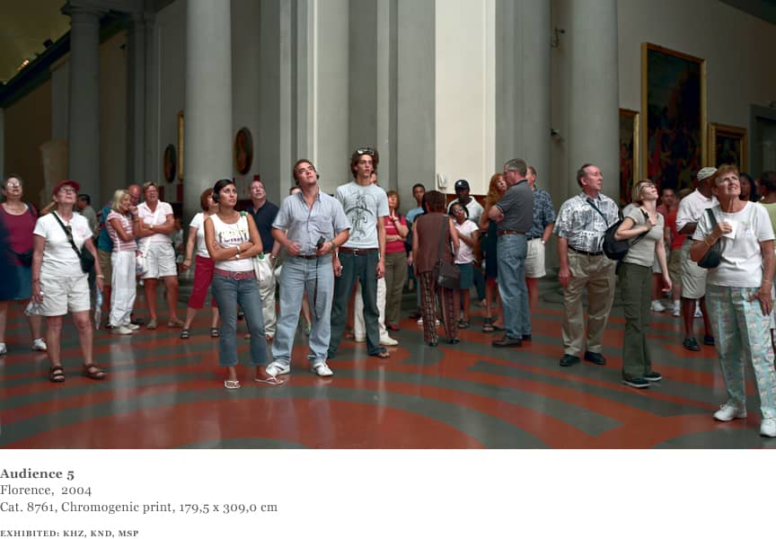 Over the course of one week in 2004, Struth worked in the David room at the Accademia. Using an 8 x 10 format and for the first time a system of artificial flash light, Struth was able to shorten the exposure and illuminate the audience from a position adjacent to the sculpture whilst diminishing the presence of the paintings behind the viewers.