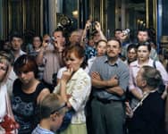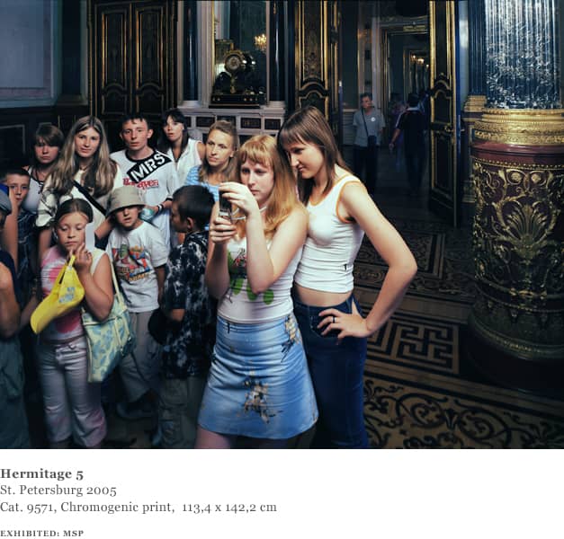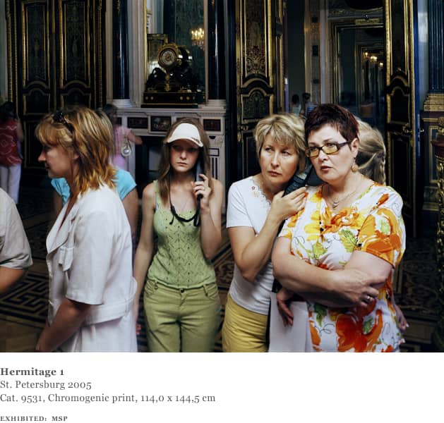 Struth continued this project with a second series of works, based on close-ups of people looking at a single work, Leonardo da Vinci’s Madonna with a Flower (Benois Madonna) in the State Hermitage Museum in St. Petersburg in 2005. The viewers themselves again become the focus, whilst the object of their attention, the da Vinci painting, is not visible.