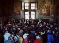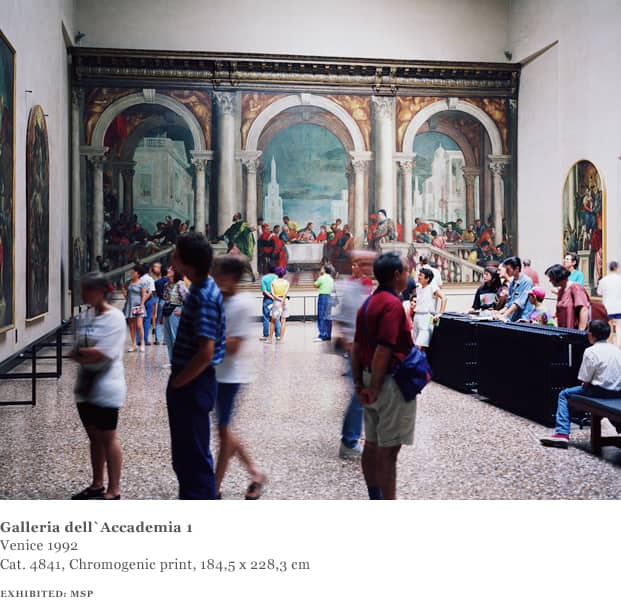 During the same visit to Rome, he also made two photographs in the Stanze di Raffaello in the Musei Vaticani. One, with a frenzied crowd of visitors, prefigures subsequent series of works made in the Hermitage Museum in St. Petersburg and the Museo del Prado in Madrid.