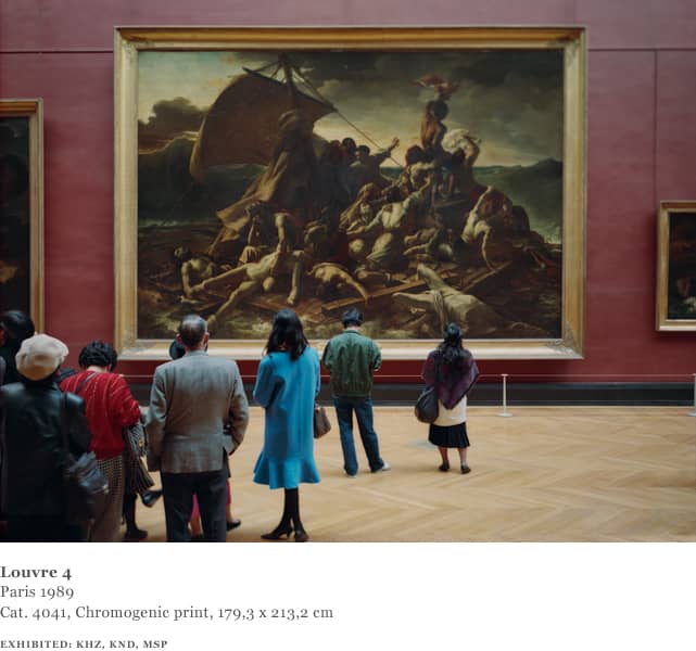 He began to work at the Louvre and the Musée d’Orsay in Paris in June 1989. The choices of rooms and subjects were initially quite spontaneous, partly to do with an interest in the motifs or with the configurations of figures in the paintings: David’s Coronation of Napoleon with a school group in the foreground; Delacroix’s The Death of Sardanapalus; a crowd waiting to look at the Mona Lisa; and a work combining the existential drama of Géricault’s The Raft of the Medusa with the presence of a group of Japanese viewers. “The idea behind the museum photographs was to retrieve masterpieces from the fate of fame, to recover them from their status as iconic paintings, to remind us that these were works which were created in a contemporary moment, by artists who had everyday lives. They can be admired but revering the artist and their work can also be an impediment. In essence, I wanted to bring together the time of the picture and the time of the viewer.”