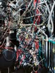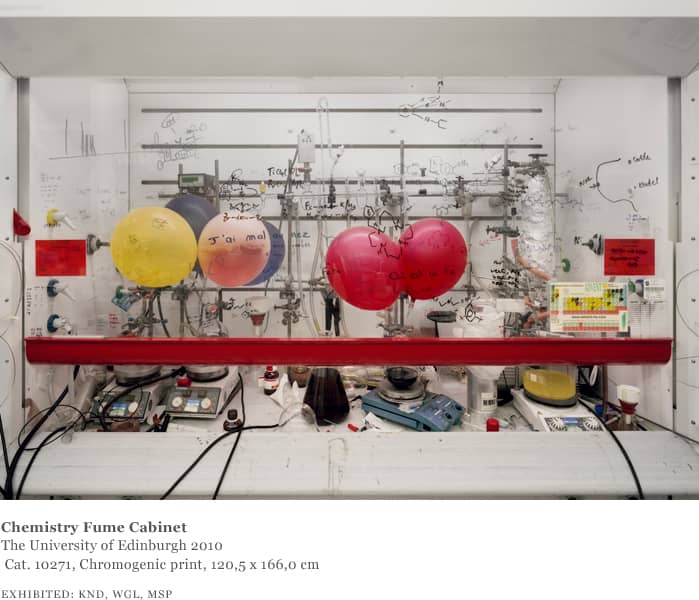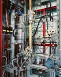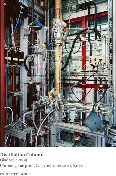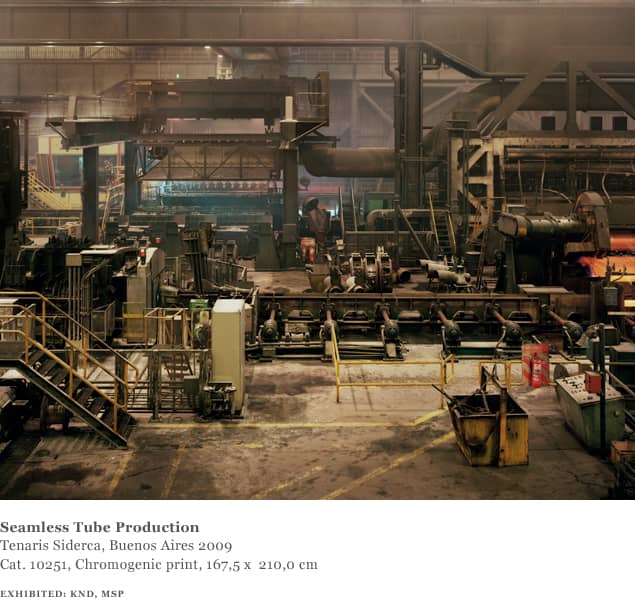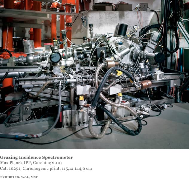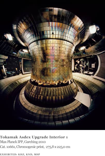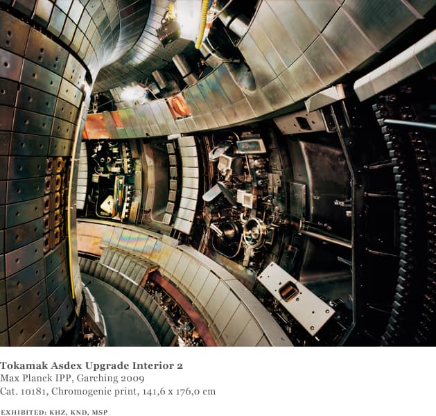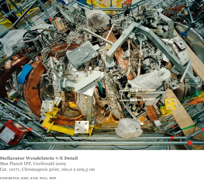 He expanded his research to encompass a wide range of sites where teams of specialists are working at the cutting edge of new technologies. These have included research laboratories and industrial complexes in Germany: the Max Planck Institutes for Plasma Physics in Greifswald and Garching; the nuclear power plant Würgassen in Beverungen, which is currently being dismantled; the ThyssenKrupp steel plant in Duisburg-Bruckhausen; as well as sites in Greece, Argentina, North and South Korea, Israel, Scotland and the United States. Some of the works picture complex and purely functional configurations of technical connections and share formal similarities with the Paradise series.